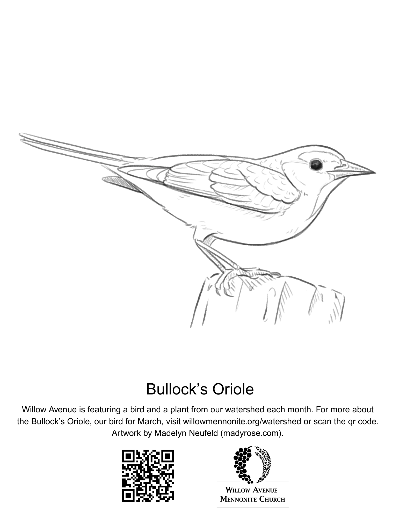 The line drawing below was created by Mady Neufeld. You’re welcome to print out and color the image below. You can download the file here. For additional information, including photographs, range maps, and sounds, visit allaboutbirgs.org or audubon.org.