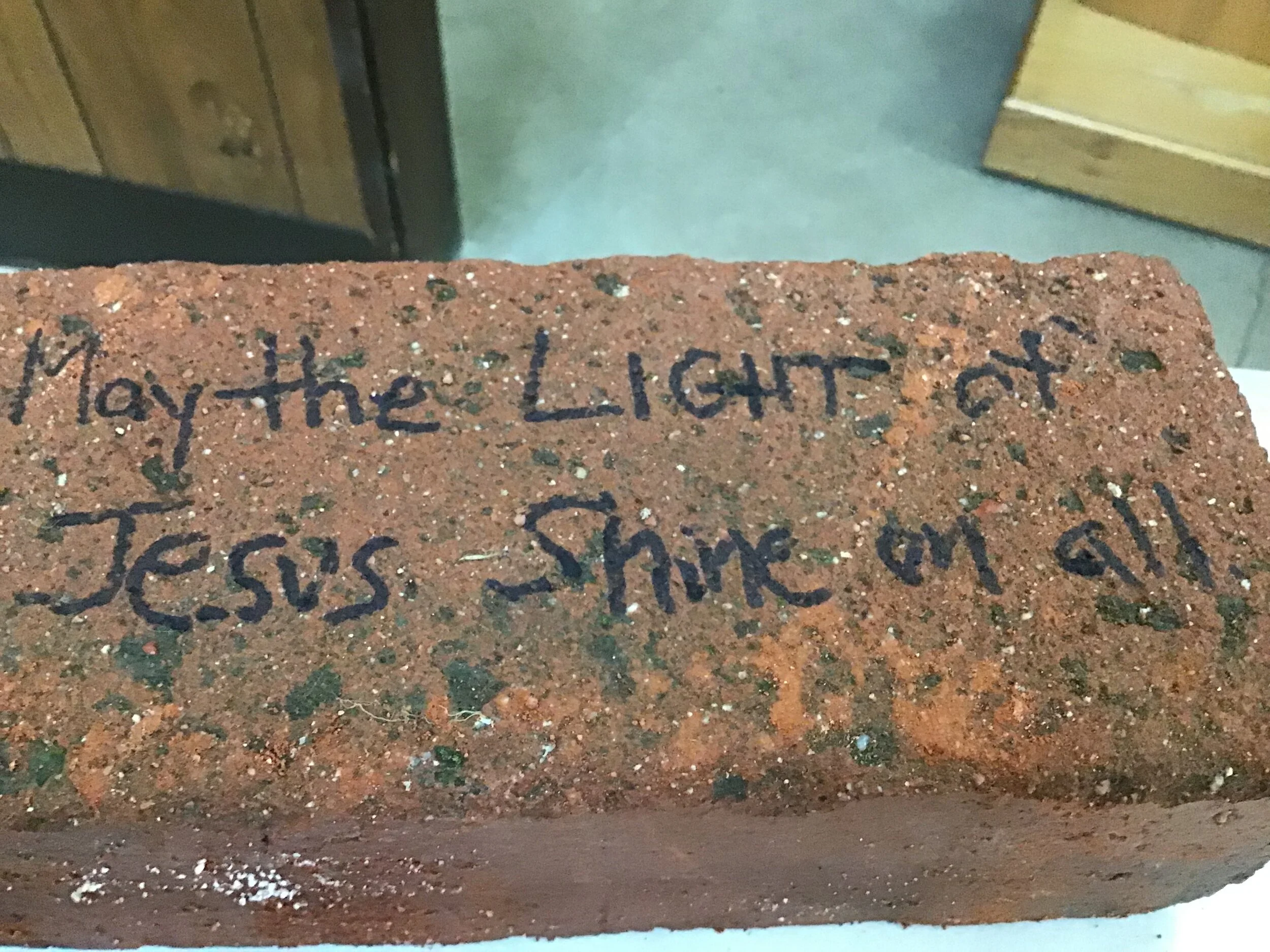 Work on the project began in October 2019 at an all-church workday. The labyrinth was completed on January 2, 2020, when 22 volunteers moved nearly 1,000 bricks donated by a church family, laid and leveled bricks into the channels and packed sand into the gaps. The sand was donated by the Head Start preschool on the church campus.